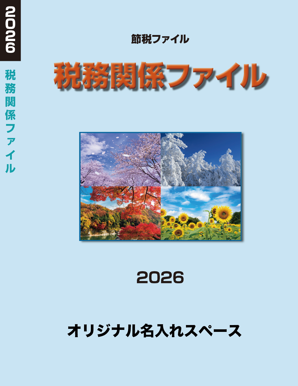 袋には備忘録として税のカレンダーや簡単なメモが記入できる簡易ダイアリーが付いています。さらに、ファイルのウラ表紙面には団体名称が入れられ、会員向けのオリジナルアイテムとしてご利用頂けます。